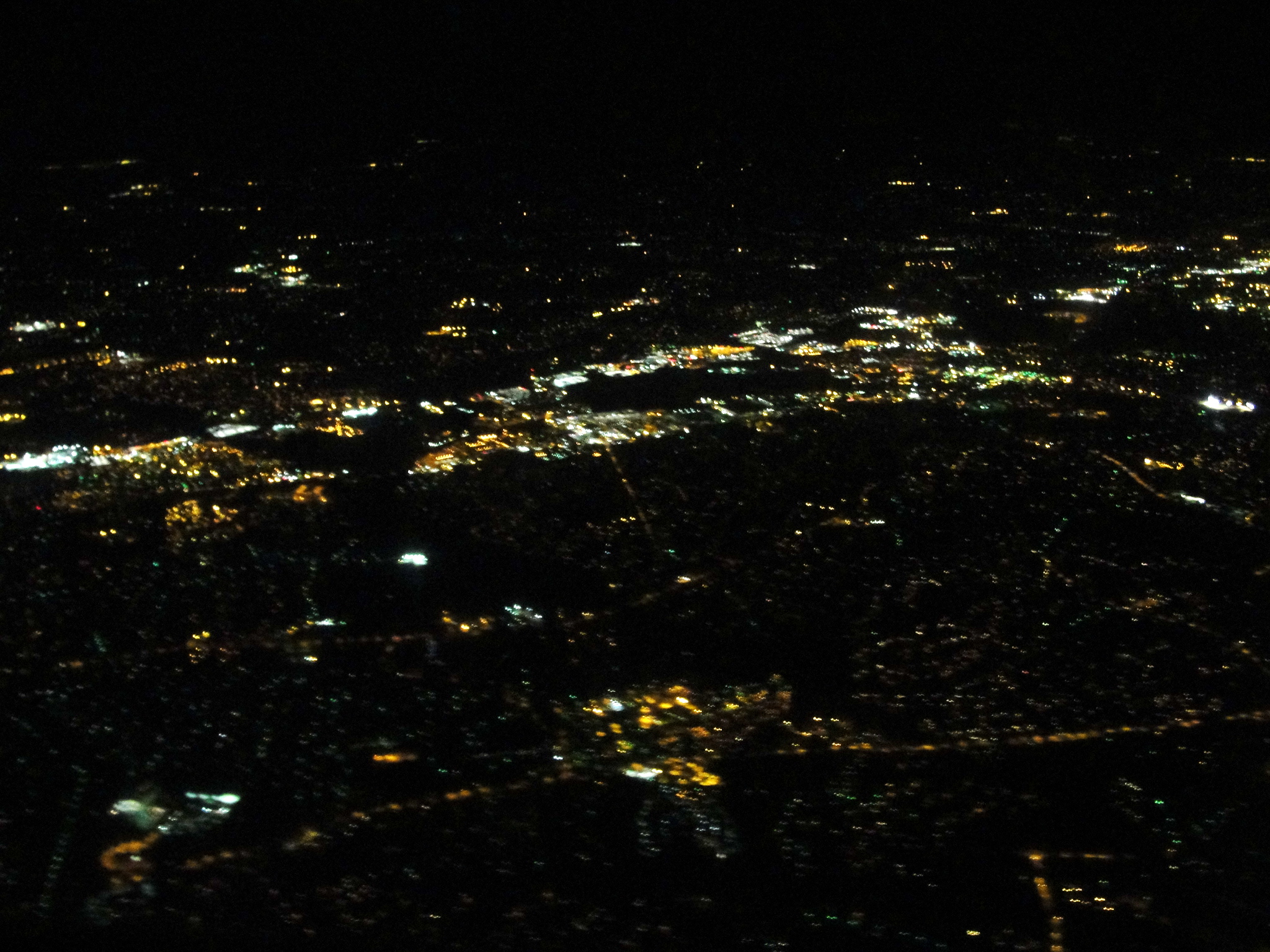 I wish you’d been on the plane with me drinking that Stone Cellars Cab out of the weird warped plastic bottle. I have a feeling that one got left in the sun on a long flight to Nevada. No matter; I tied one on and watched a Hilary Duff movie, until this caught my eye out the window. Oh, Roberto, it was like a Lite Brite board! Just imagine all the little people down there: all that credit card debt and phone calls to American Idol and toilet paper and empty Blue Moon bottles and cats just like Eli, but nowhere near as handsome as Eli.