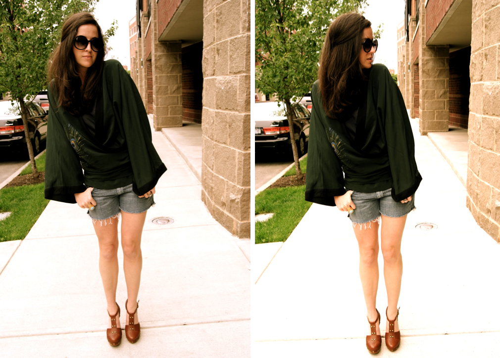 Such a perfect outfit! I absolutely love the emerald color of that kimono. And it looks marvelous with those shoes! Perfection!