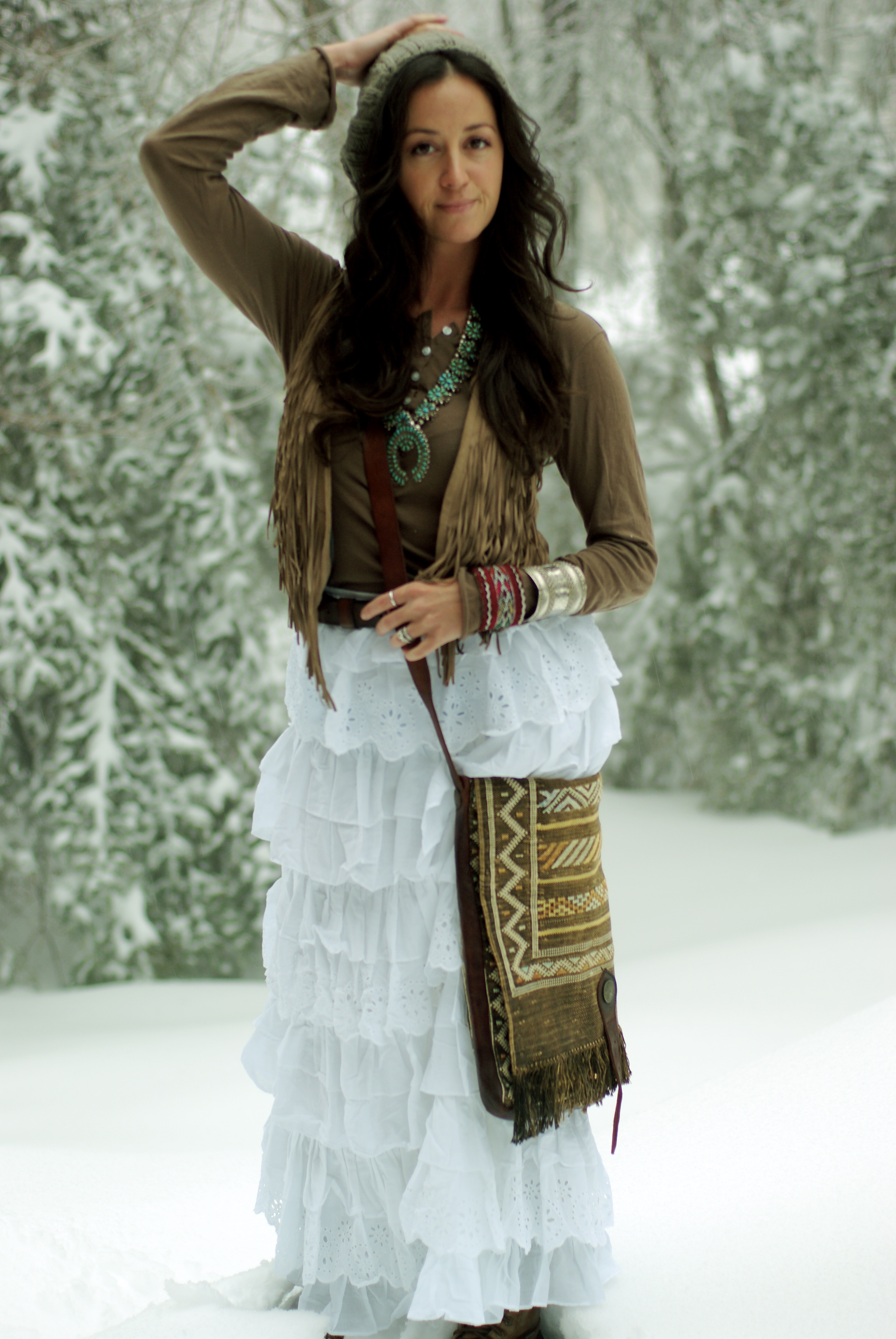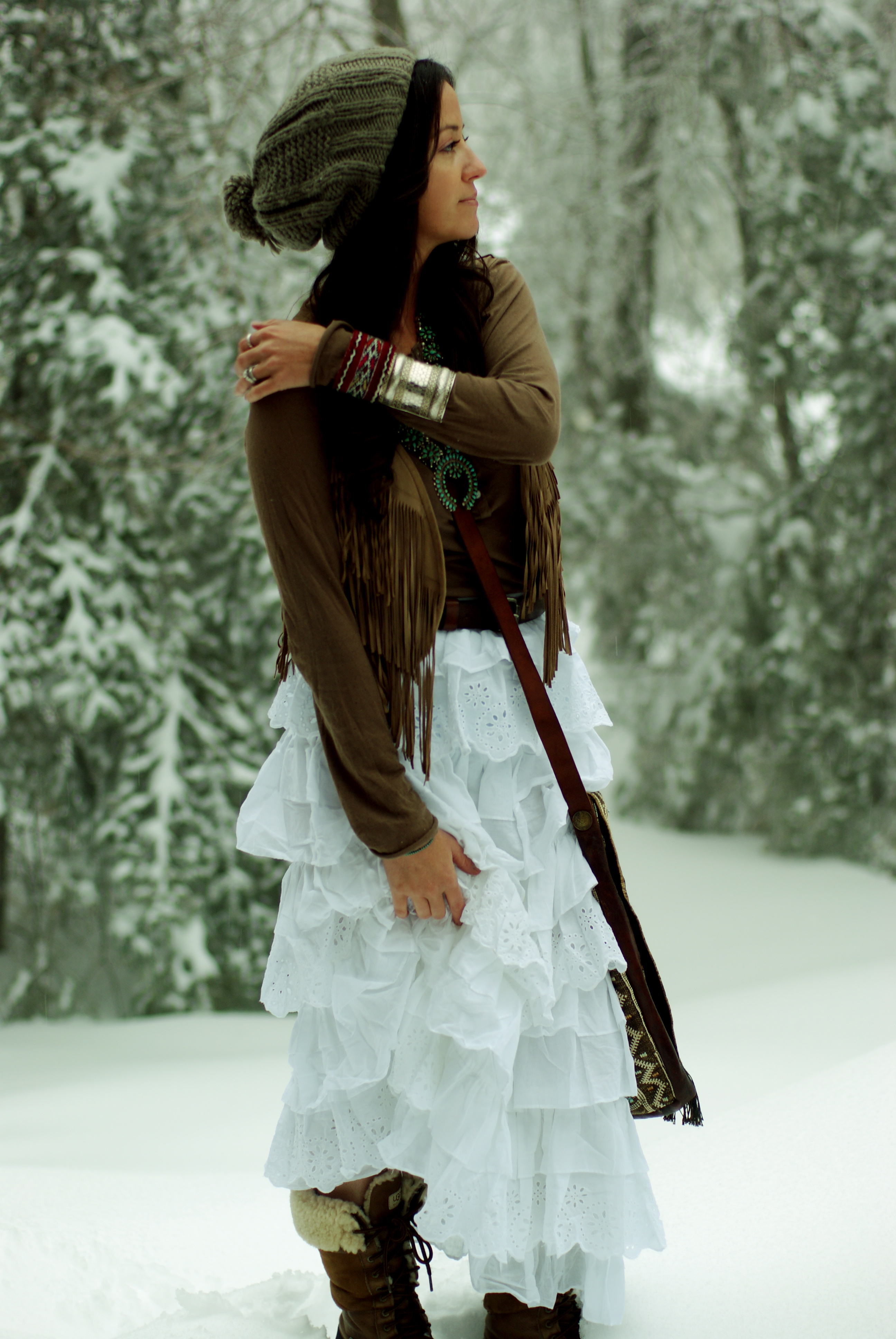 This is freaking magical — I want snow! Your outfit is so pretty, I love the fringe jacket and the peasant skirt. And I wont even get started on that turquoise necklace. Amazing, just amazing! <3