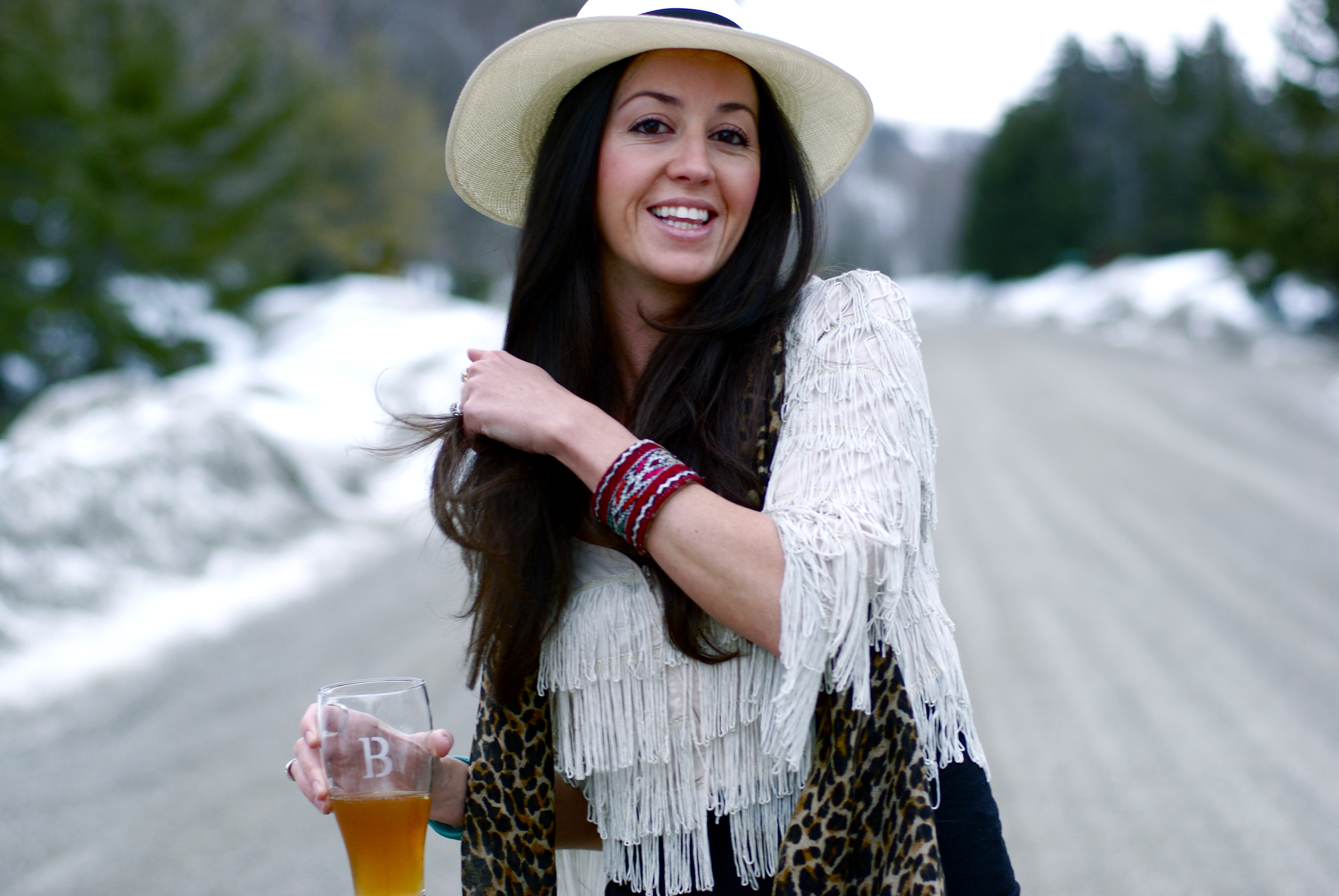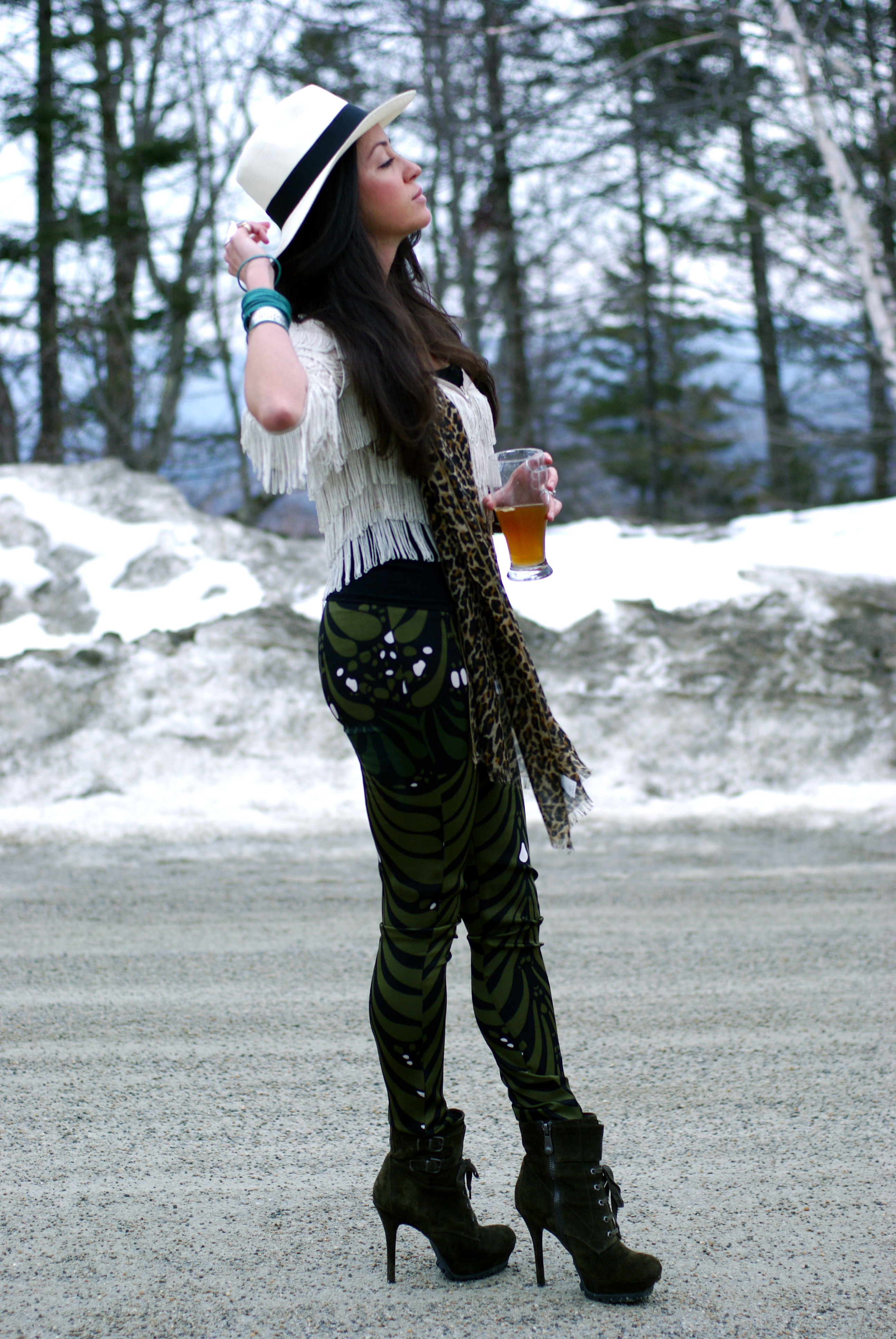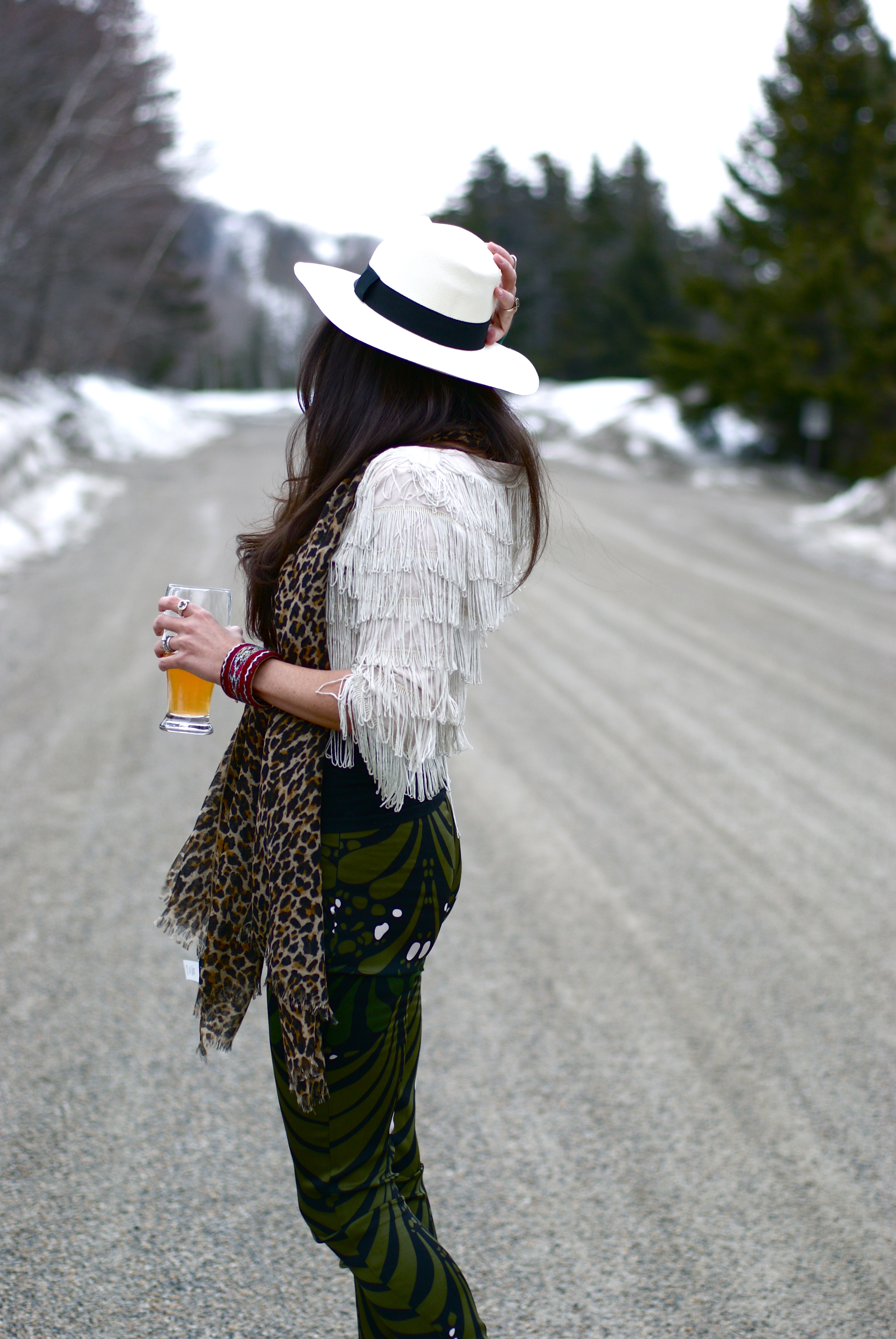 I’m spazzing out over this hat. It arrived too late for our trip in December, popped in around February, and has been resting on the back of the arm chair waiting for its debut! The best part is that it totally takes this look from borderline prostie to backstage dingleberry, hanger-oner person.