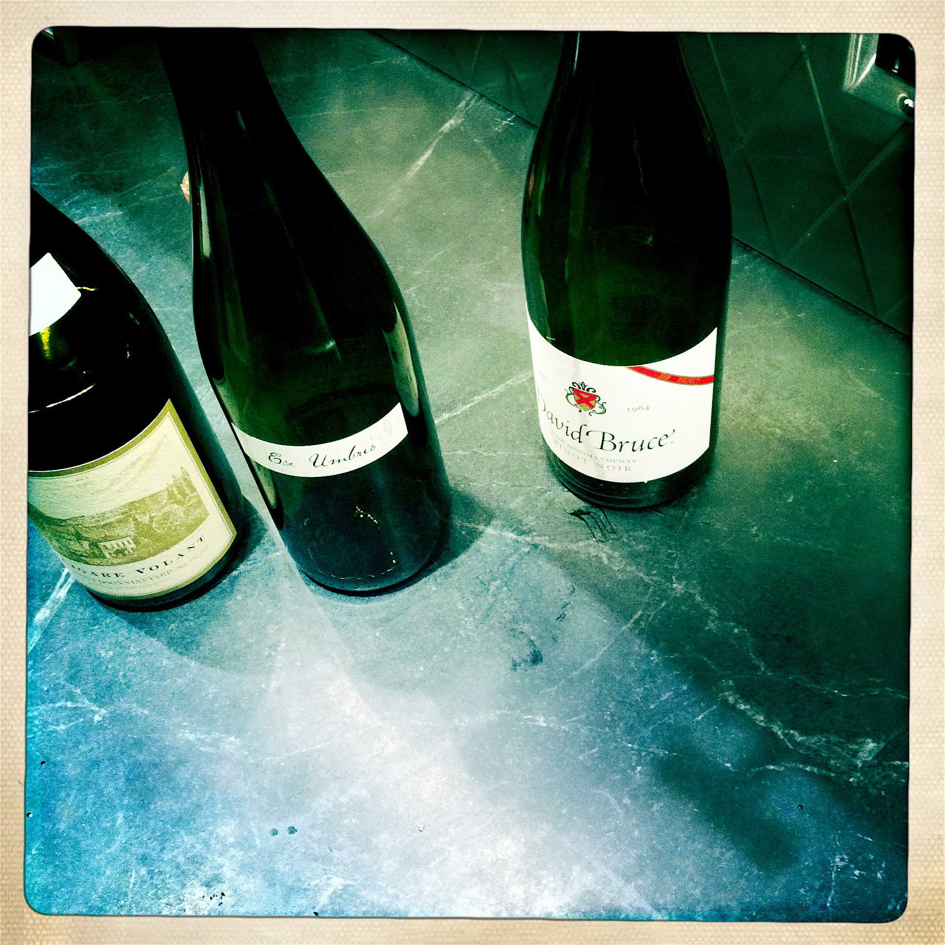 [2007 Bonny Doon Le Cigare Volant, 2008 Owen Roe Ex Umbris, and 2008 David Bruce DB Select Pinot Noir]