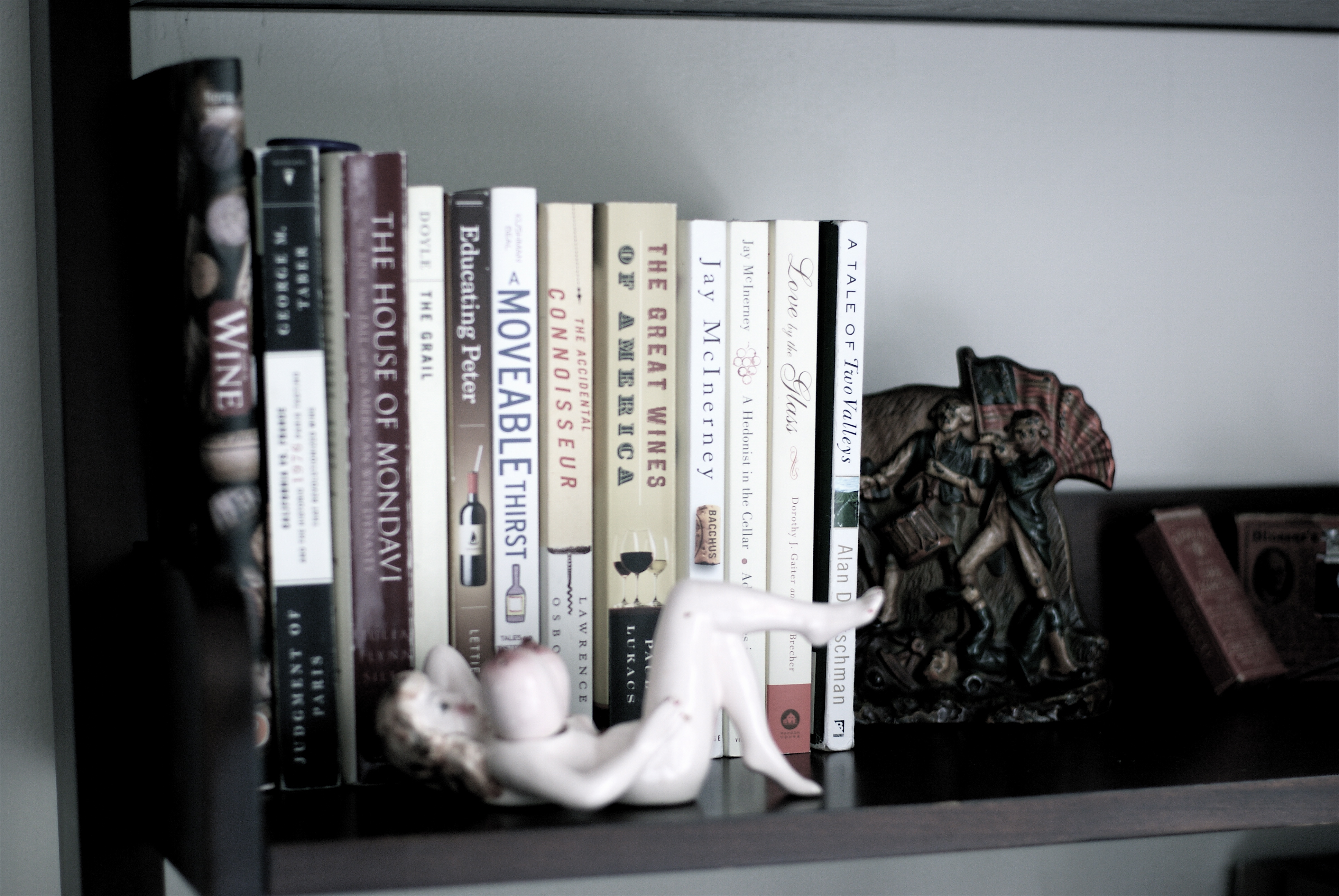 Bookshelf, with naked lady whose boobs are removable salt and pepper shakers. The salt comes out too fast, so we stopped using them.