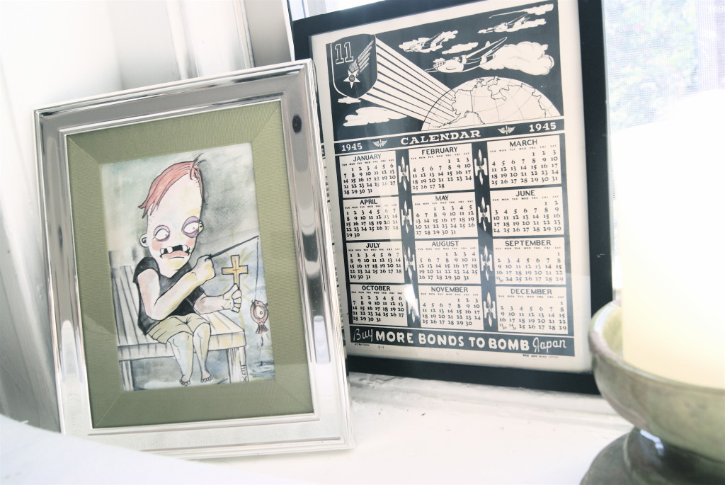 Our purple-eyed, God-fearing, elephantine armed, fishing boy watercolor. I was so impressed when I found this on ebay I had to get it for Carey. She loves it of course.