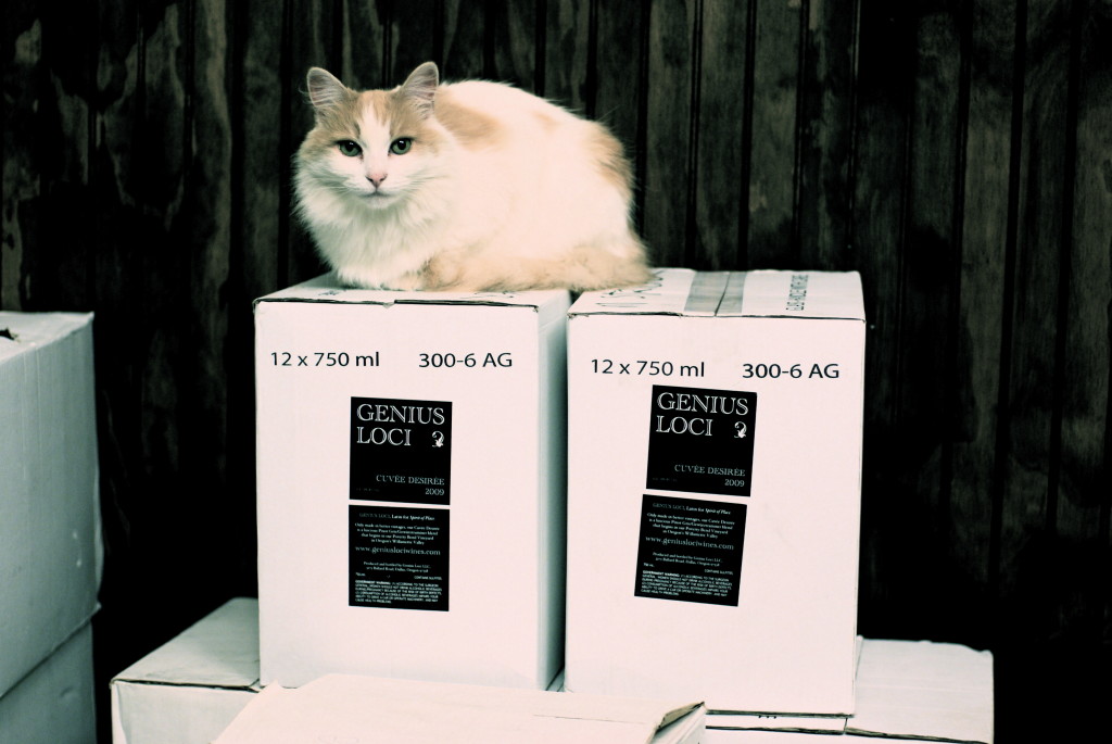 Catus mushroomus. Grows on or in cardboard boxes—in this case, on Michael’s Genius Loci Pinot Gris and Gewurtztraminer blend, Cuvee Desiree, named after his lovely wife: