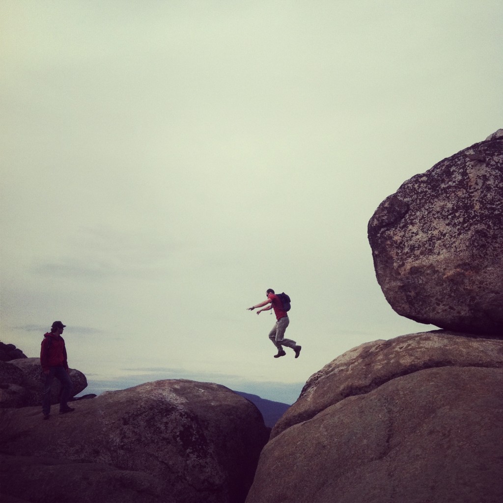 It was pretty nippy at the summit, and we found a little nook between two big boulders and set to work on making sandwiches, divvying up beef jerky, talking about cats, and generally acting like dorks. I didn’t realize how good the air was going to be—both for breathing and for thinking.
