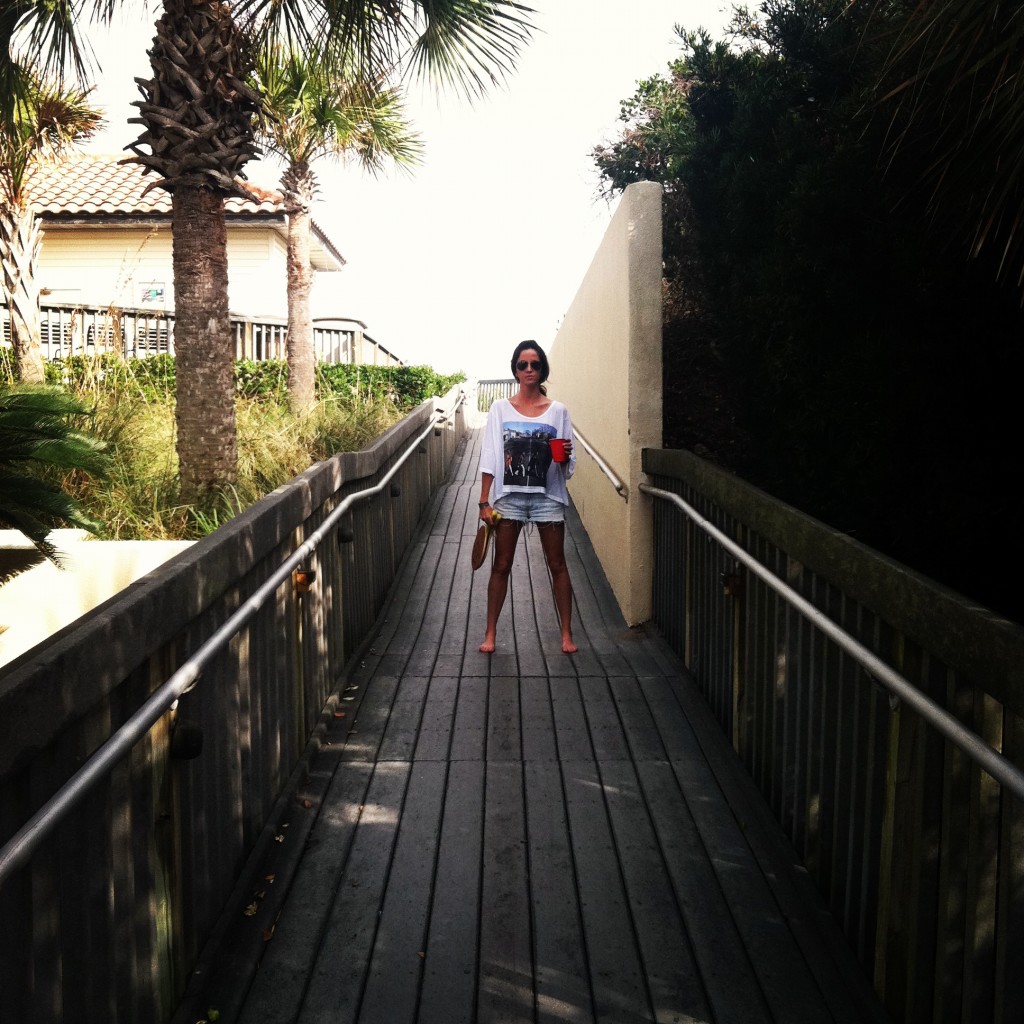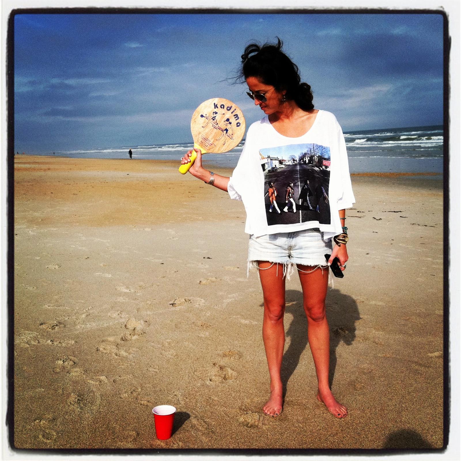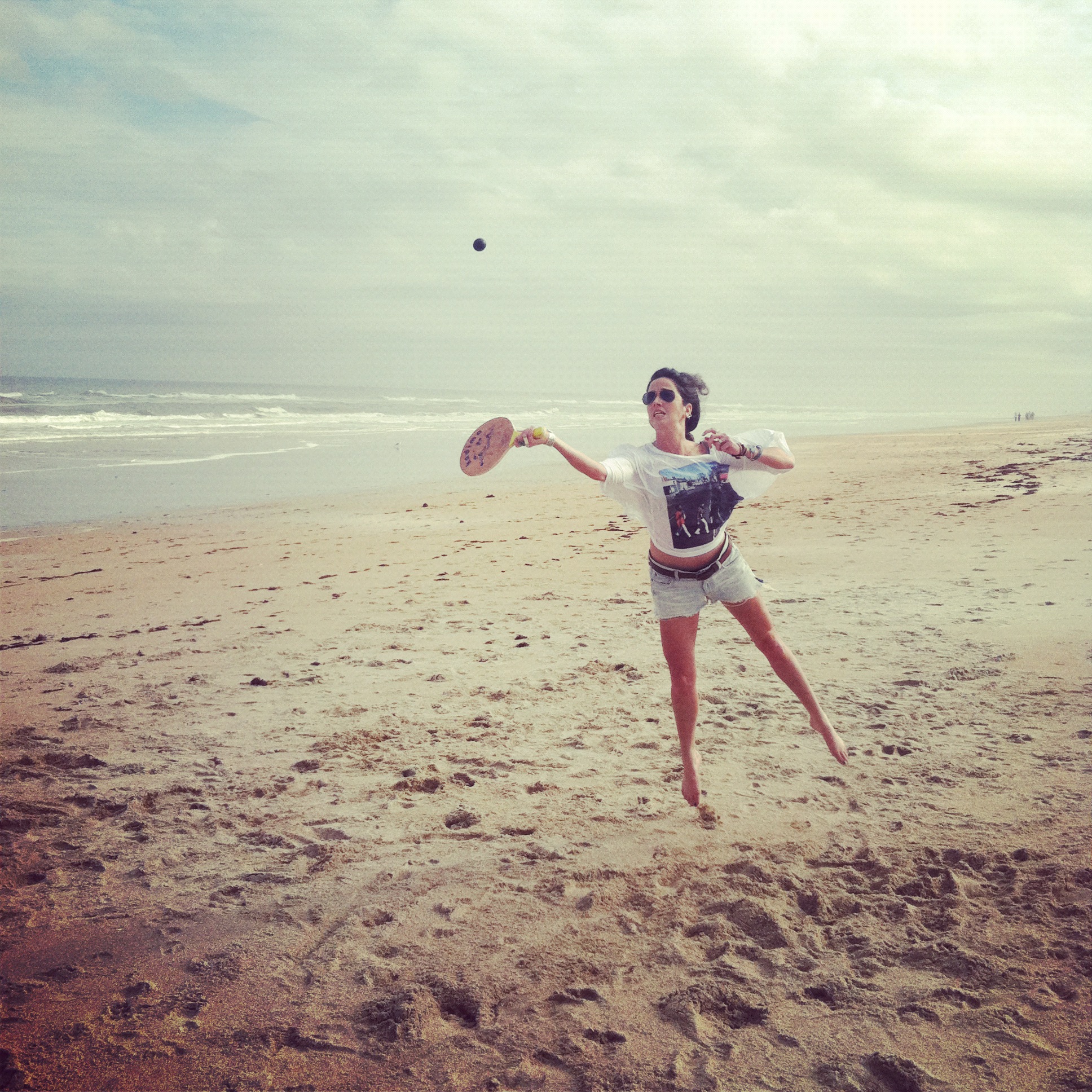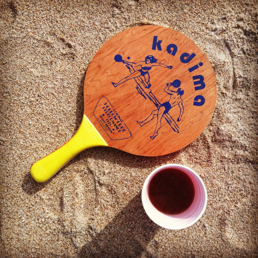 [Bloody Mary + a head-clearing, seaside game of paddleball. Both briny and perfect.]