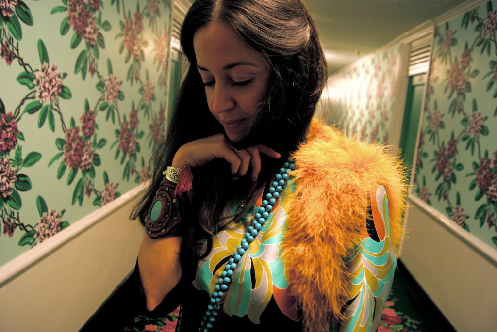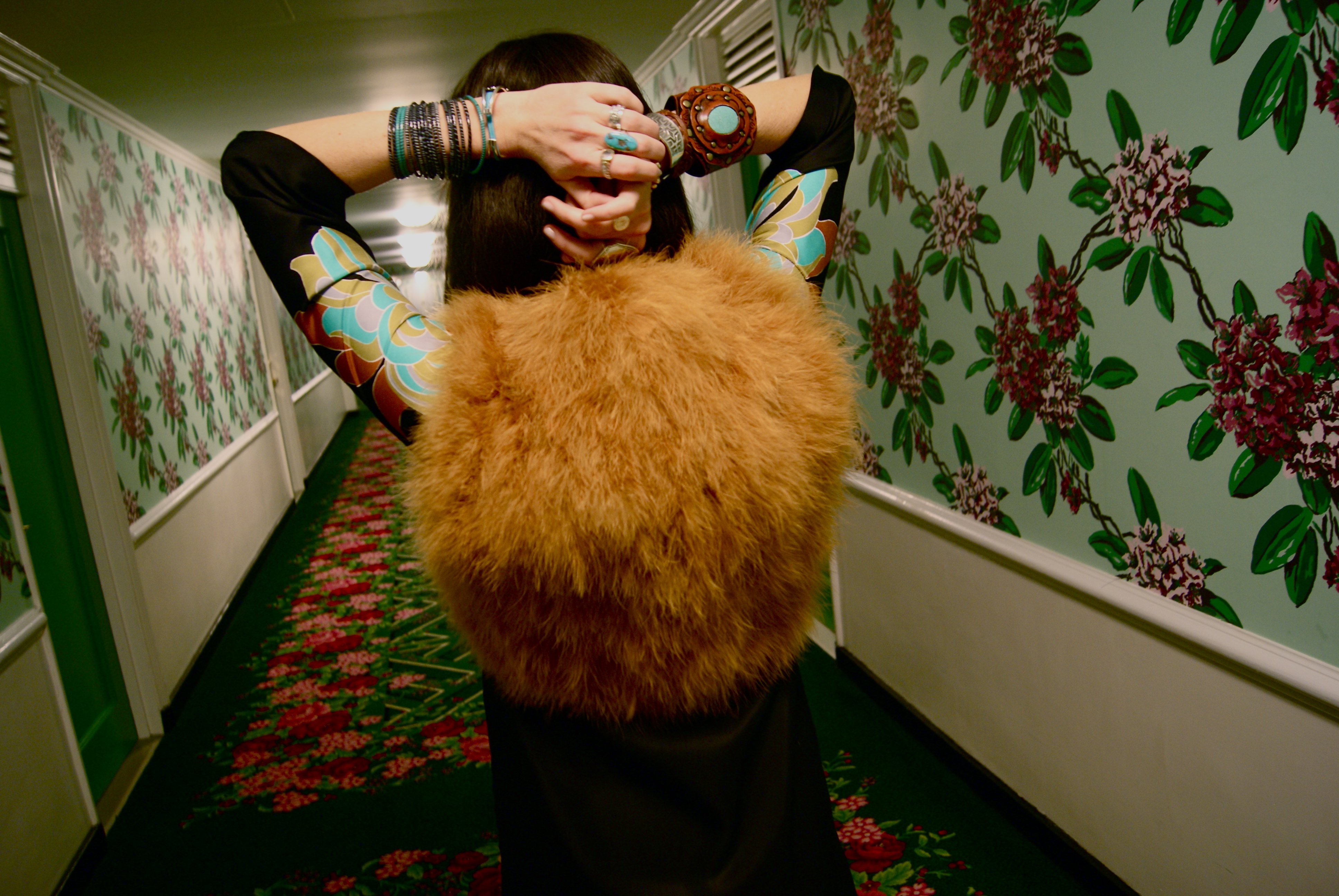 [Tibi dress + Club Monaco vest + Free People leather cuff + Citrine by the Stones tasseled bracelet.]