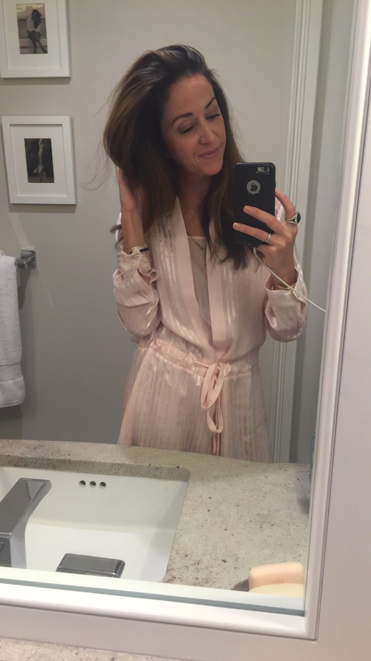 [Concealing visible cleavage in a Mason Michelle Mason shirtdress with sheer panel inserts. Boobs at family functions, por que non?]