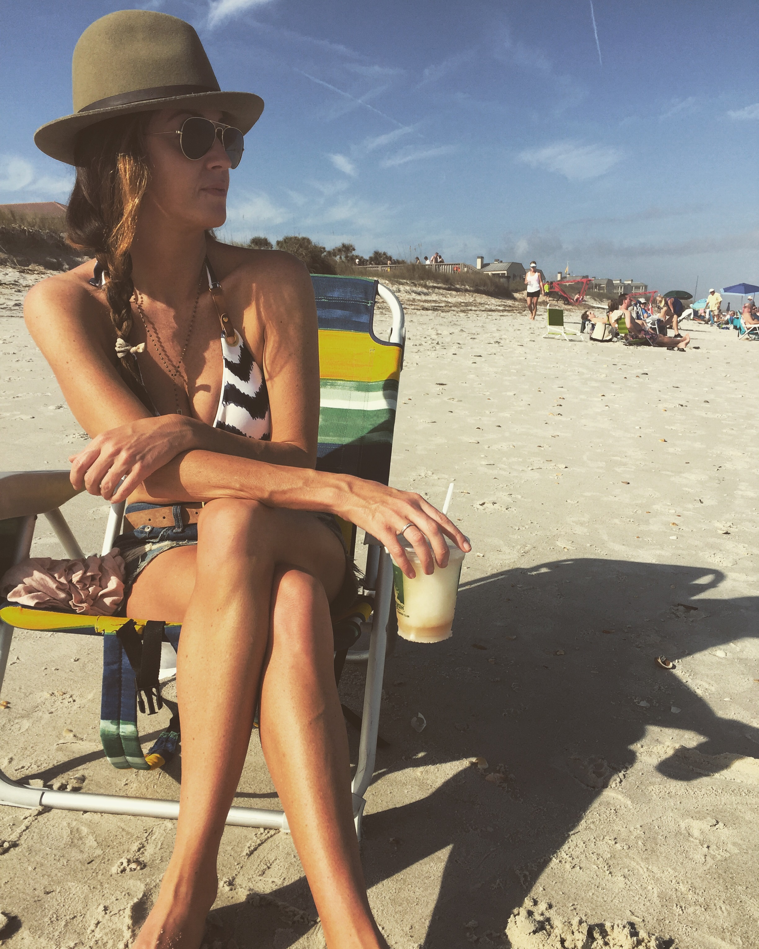 [Last day, on the beach drinking margaritas with Mom in my best new Rag & Bone t-shirt that costs exactly what a cotton t-shirt should cost. Just kidding. Also, one of the two Chan Luu rosaries I got with the idea if I needed to get rid of all my jewelry and only have enough for a backpack in Machu Picchu, these two would do the trick.]