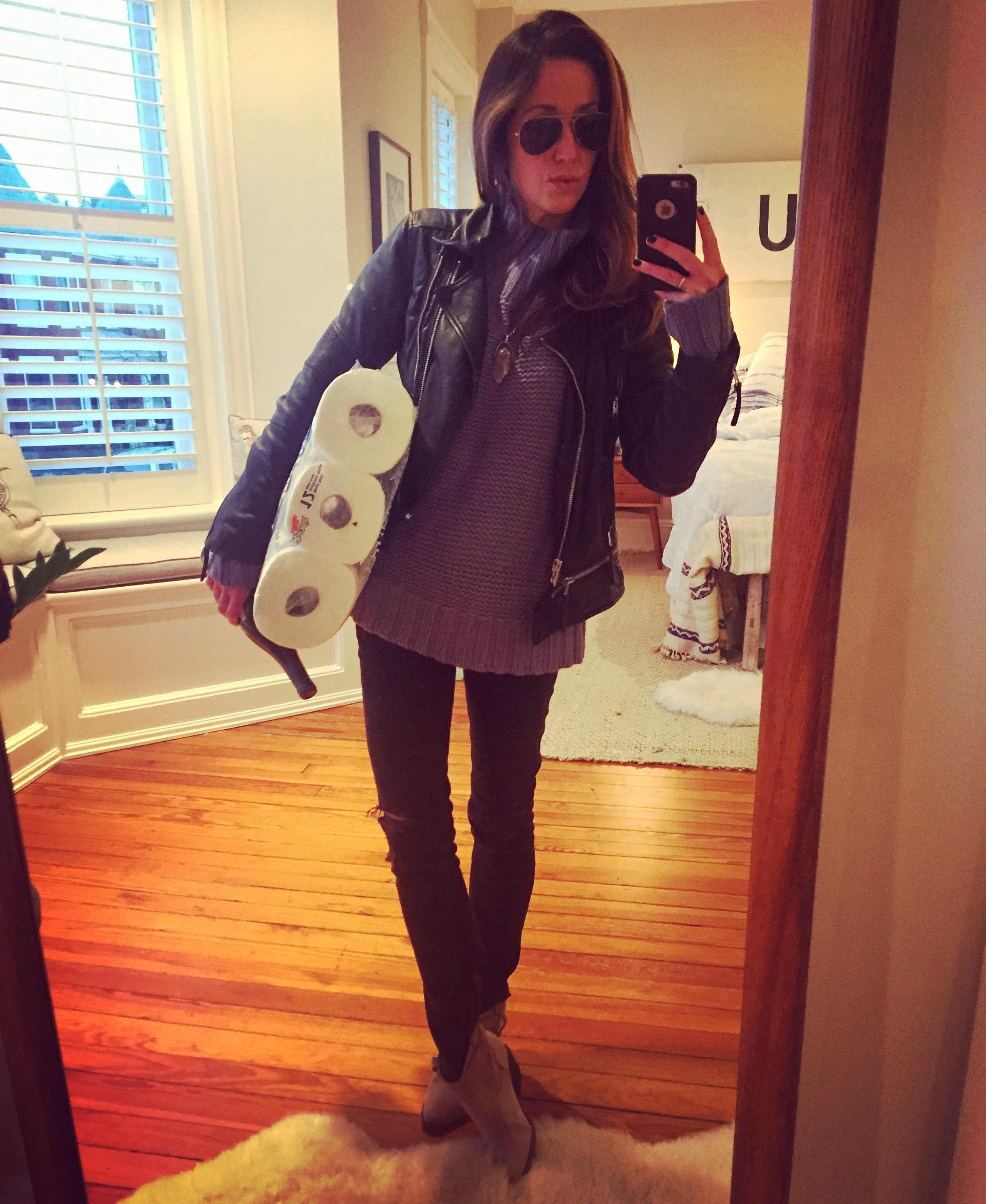 [A solo grocery store trip during which I purchased only two bottles of wine and TP. The struggs c’est vrai.]
