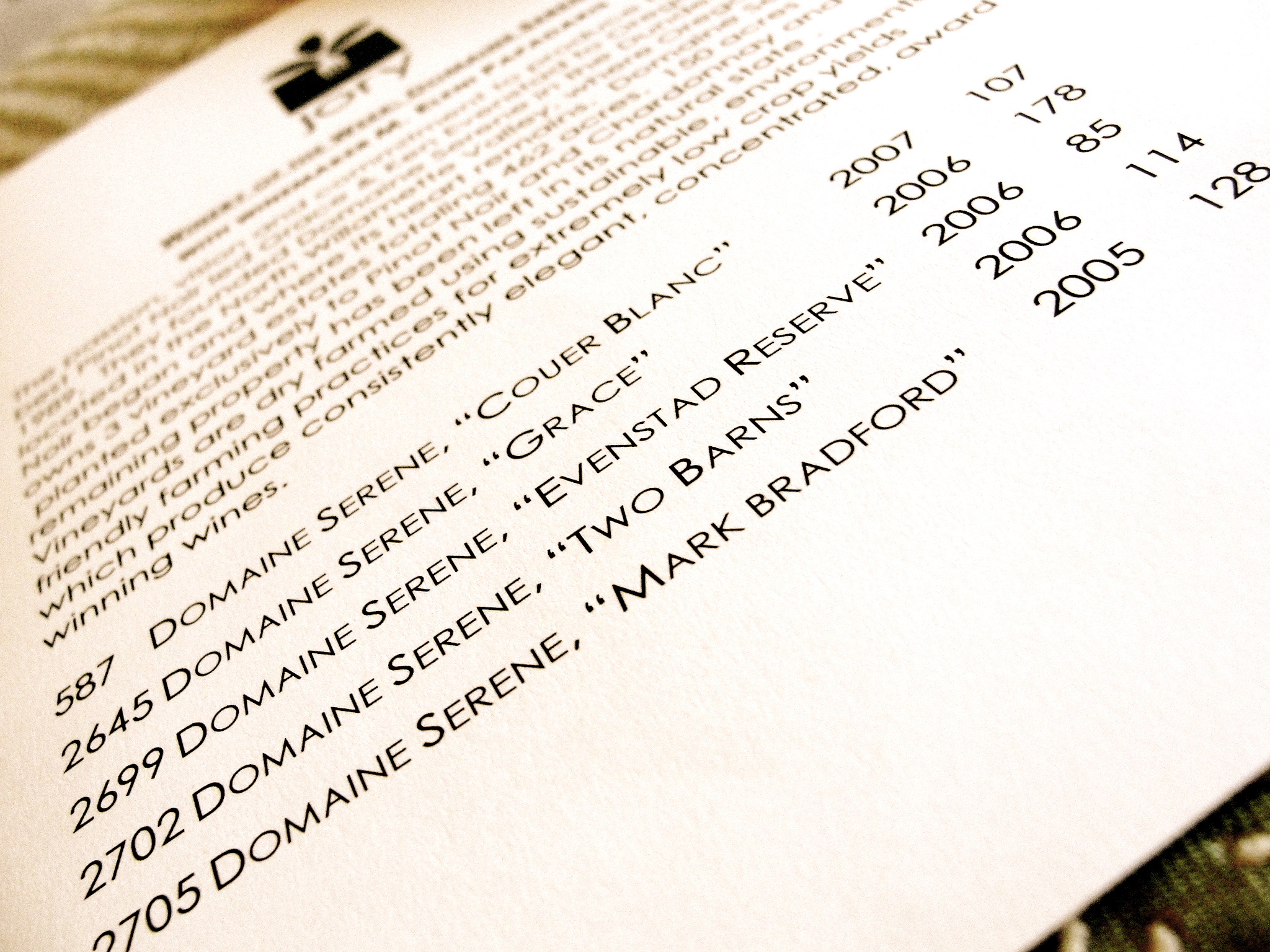 [Tonight’s agenda for wine tasting at the hotel. We were planning on visiting Domaine Serene on Saturday anyway… tres bien.]