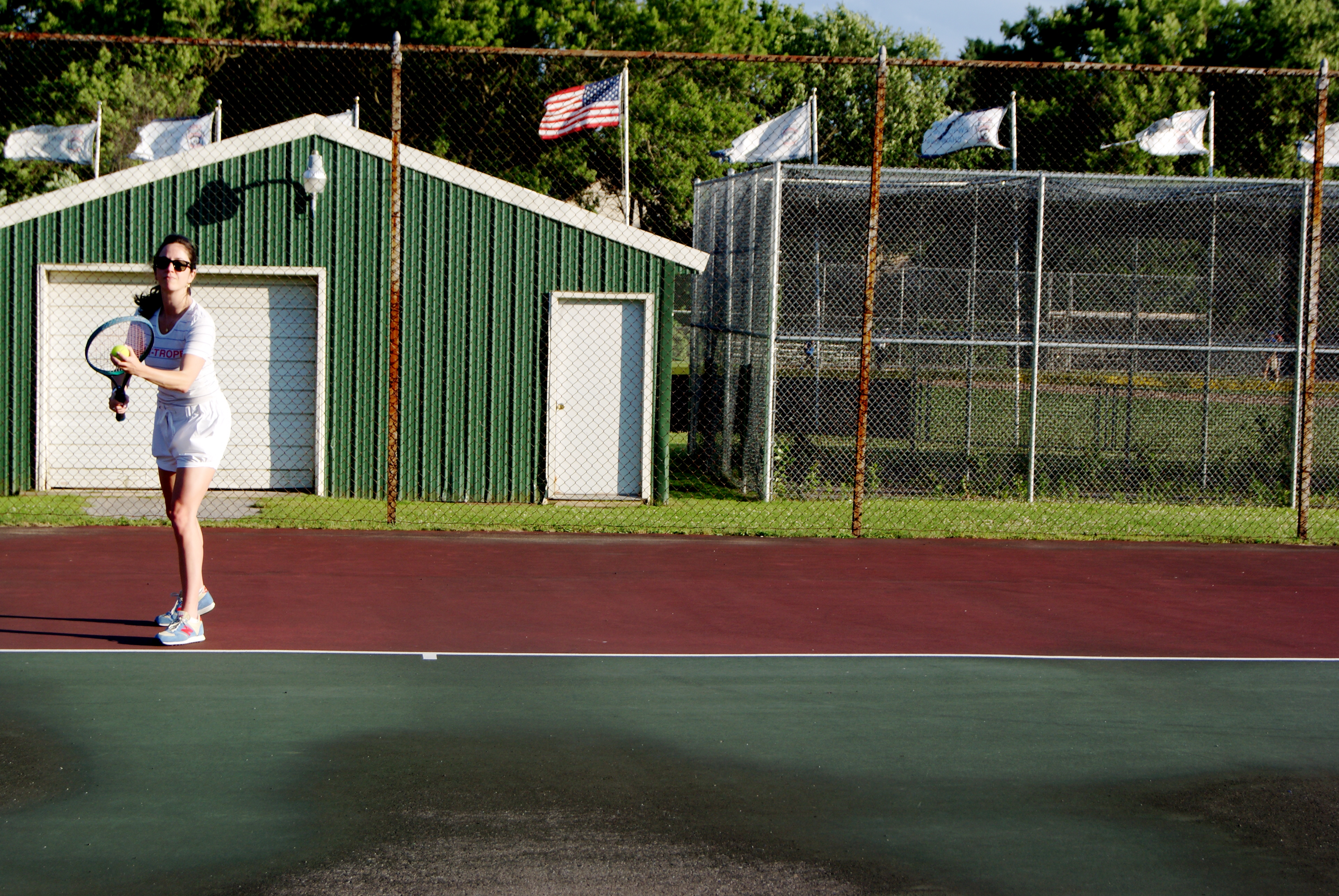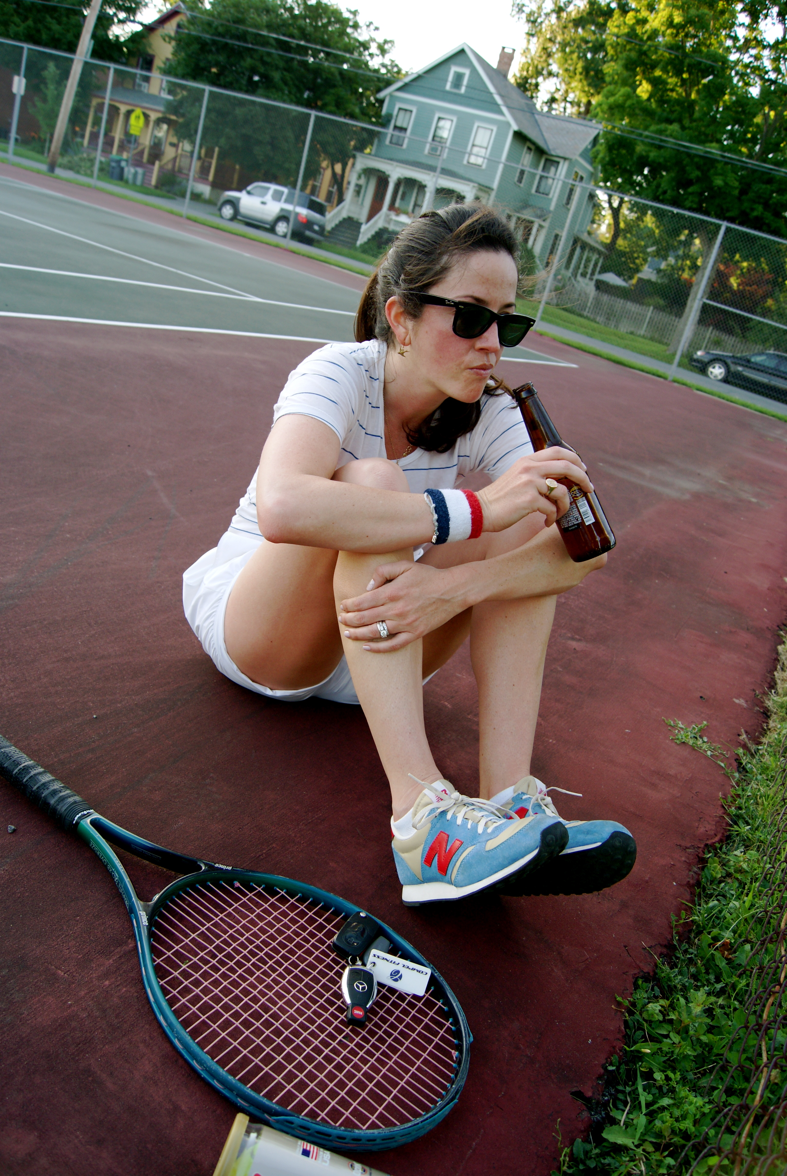 *Disclaimer: there will be absolutely no instances of high heels on tennis courts in this post. But there will be drinking on the courts. Exhale and carry on.
