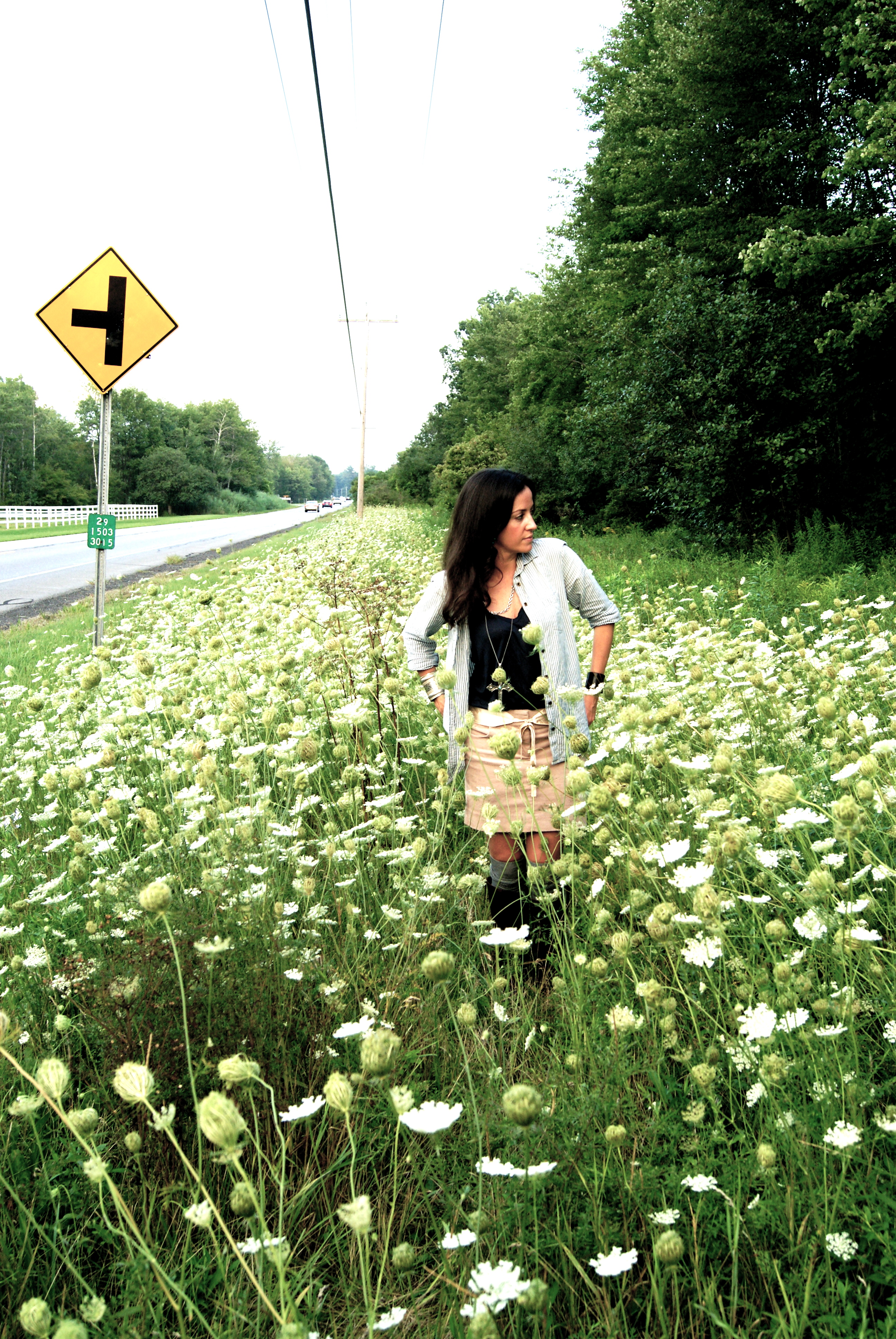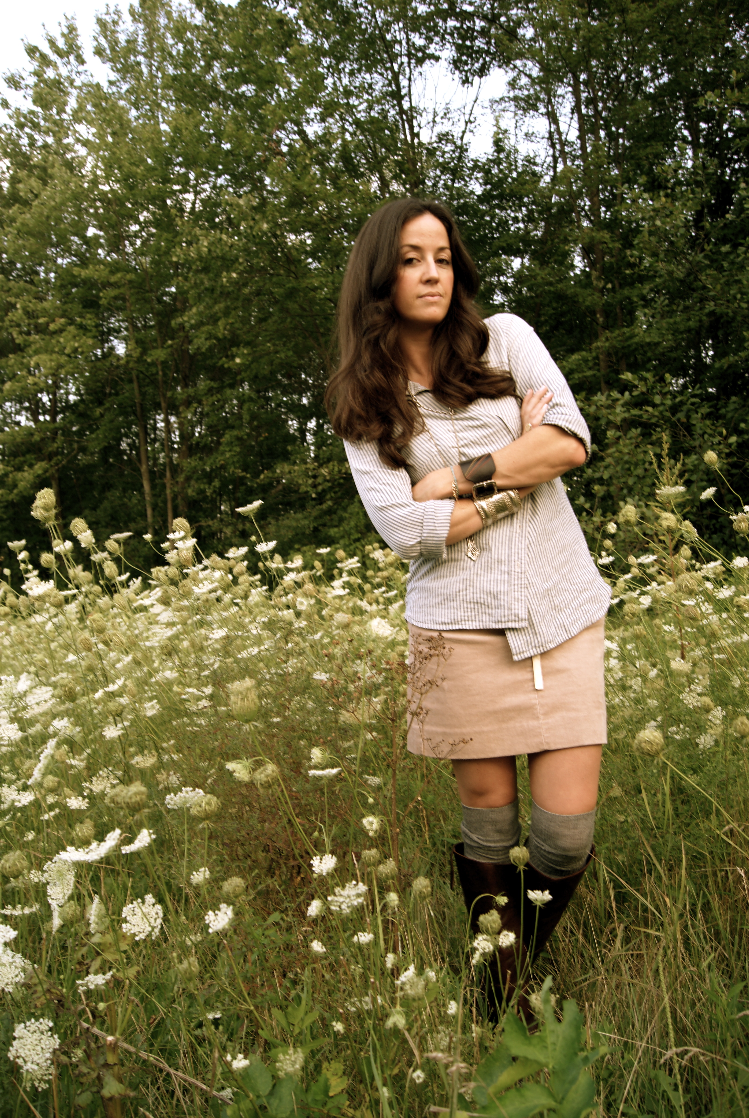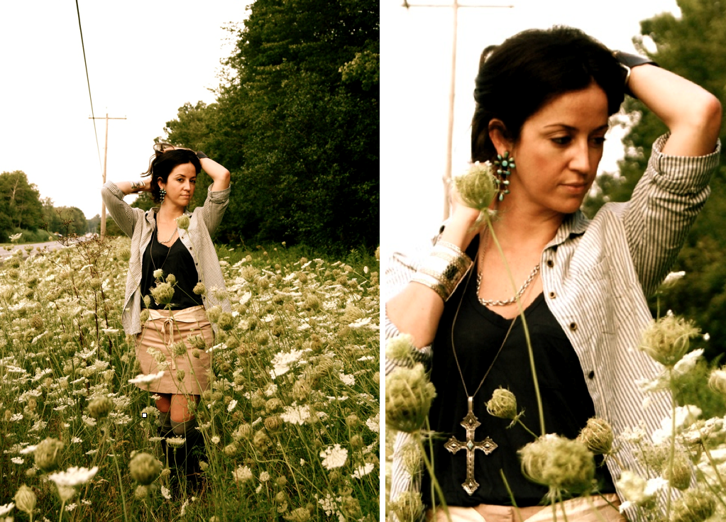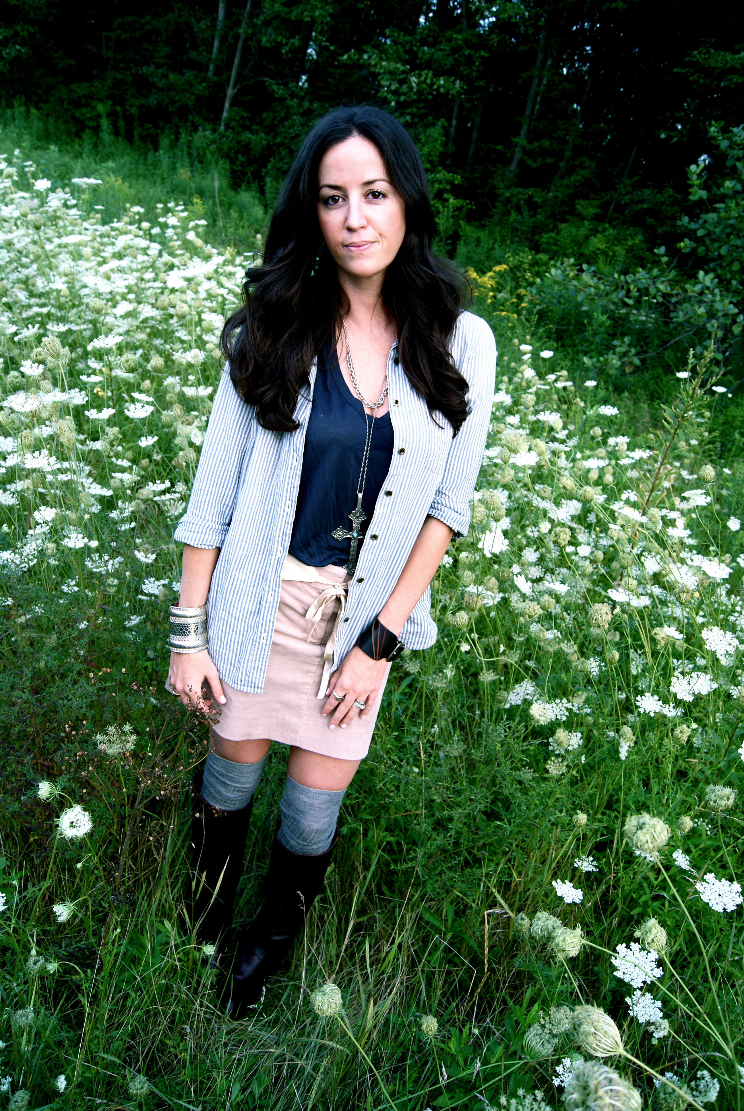 let us discuss the outfit. pure, simple perfection. not overdone. absolutely dreamy. feminine, but also tough with the boots. i love the color of the skirt. i love that you’re wearing it with the striped chambray. i.love.it. and the fact that you are standing in those flowers is totally next level. ps – falke socks over at shopbop – just bought two pairs-lifechanging over the knee-ers.