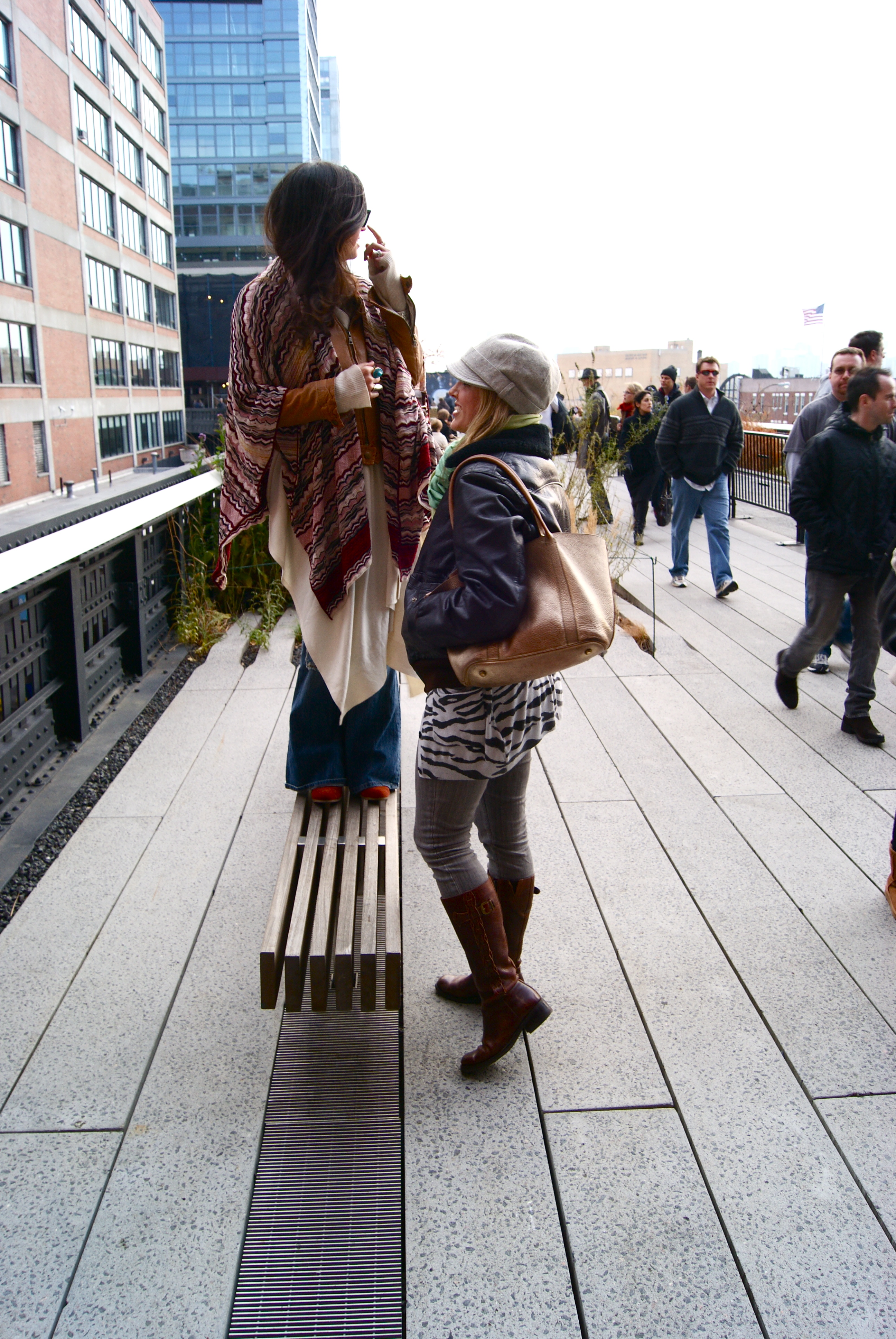 You know the gallery section of the High Line? We waited until the street was empty then walked into the middle of the road and gave them a show—I whipped my layers open like a flasher while Kristin turned around and wiggled her backside at them.