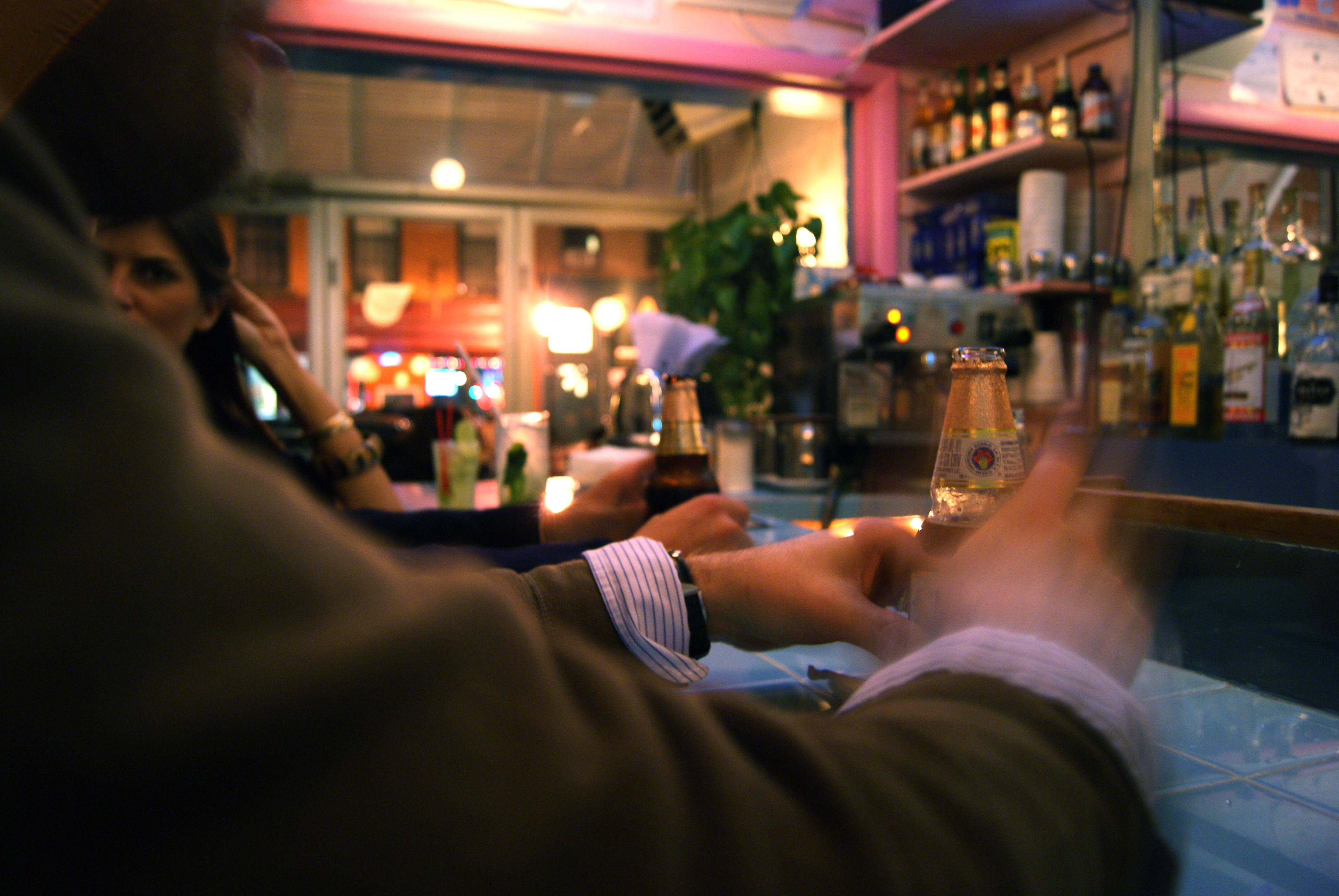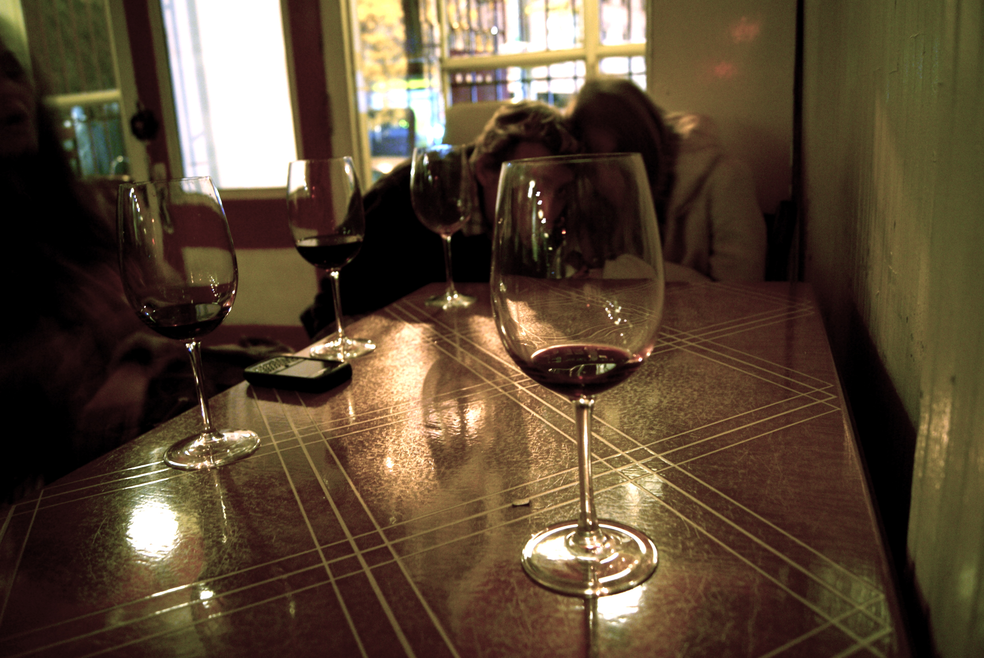 Casey and Beth shrouded by atypically nice stemware at an atypical bar—Spuyten Duyvil on Metropolitan Avenue in Brooklyn. More on the wine and the bar soon.