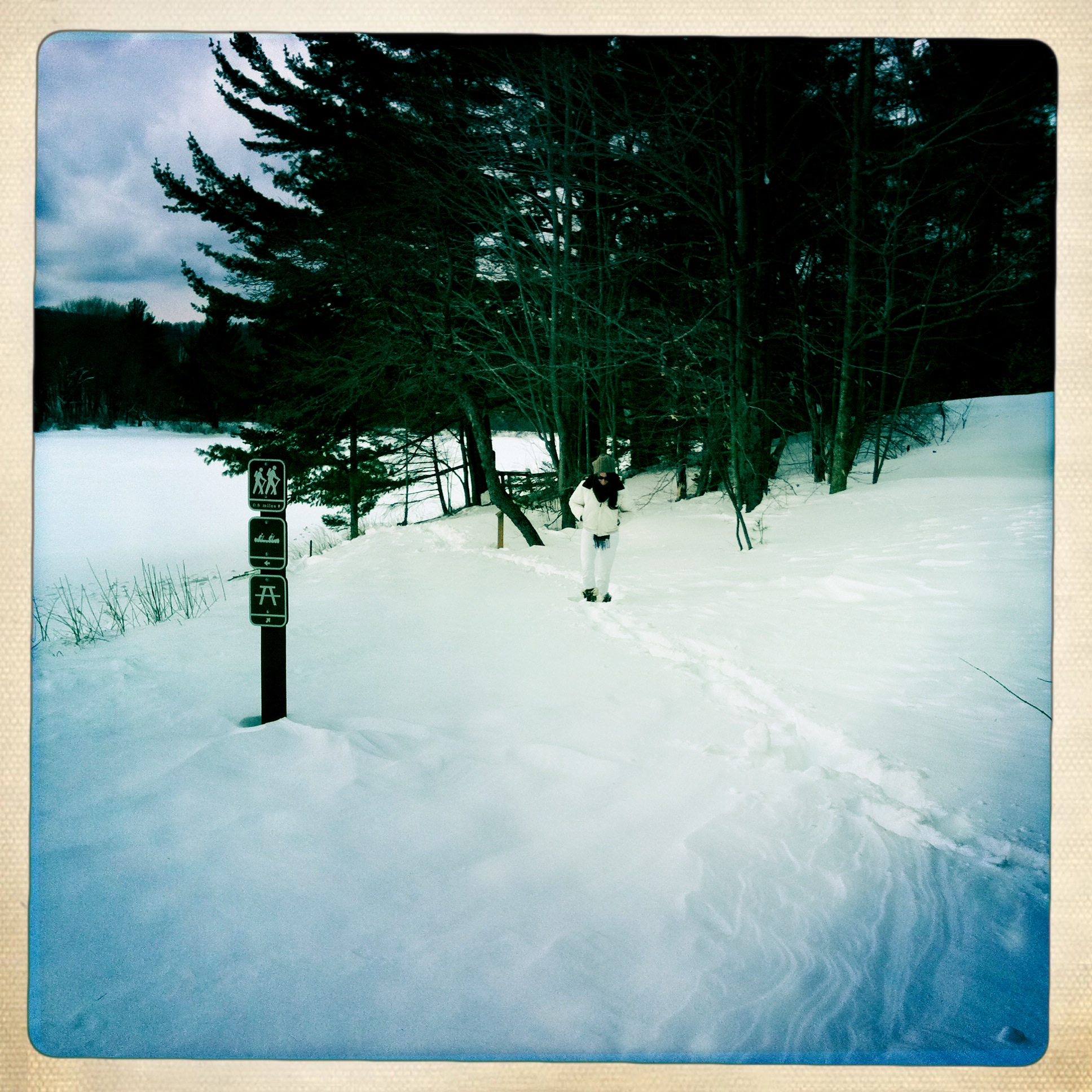 Carey was in the mood for a good, old-fashion trudge through the snow. A country road would not do, I understood; she wanted peace, tranquility, and the low afternoon light. The quiet was consuming and the snow drifted waist deep in places but we pushed forward. I broke trail and Carey packed for an easy shot back to the car.
