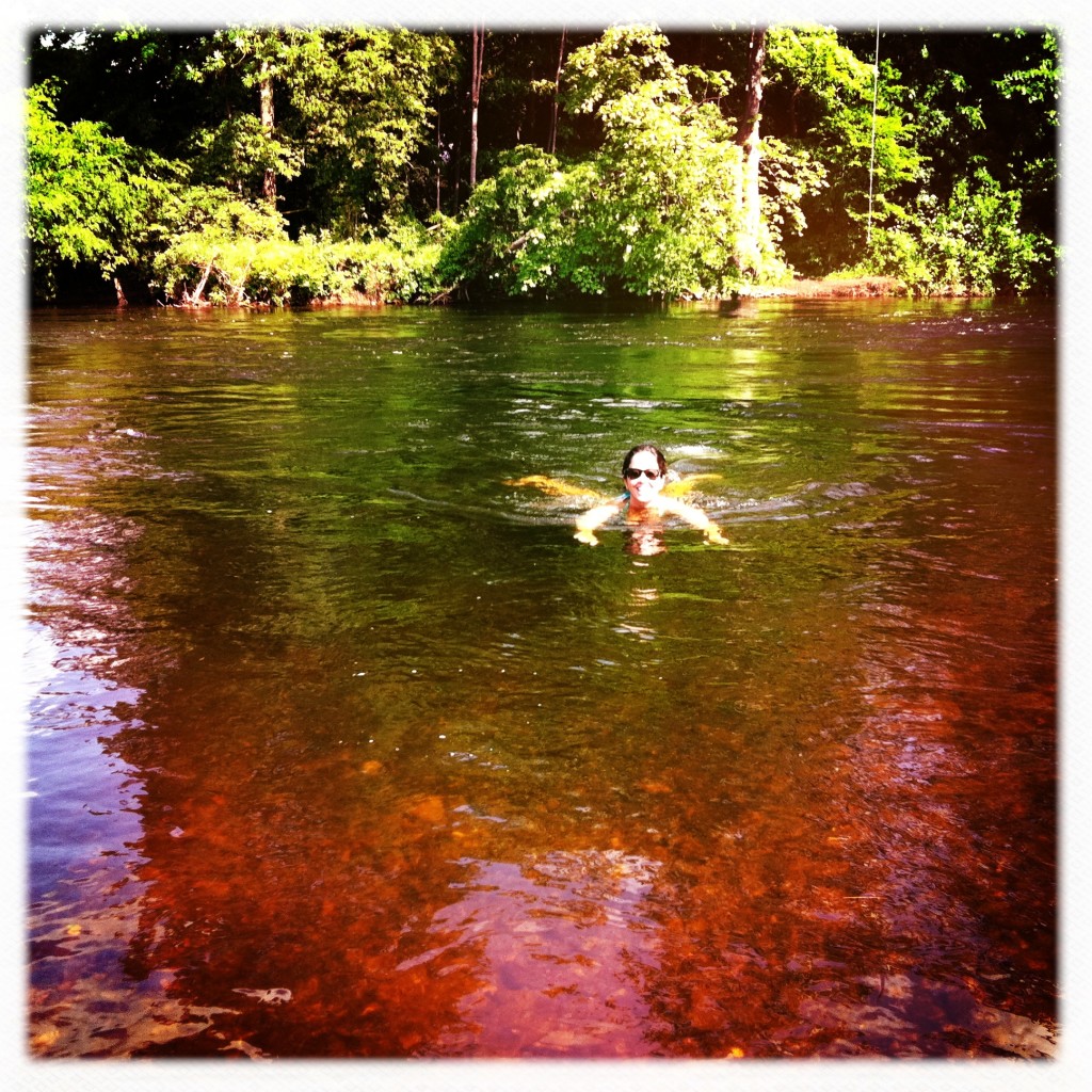 This was the best part. After some tubers passed through, I worked up the nerve and dove out from the little eddy I was holding my footing in. The current swept me out and I stroked purposefully for a few minutes, pausing to notice I had only managed to stay in the same spot.