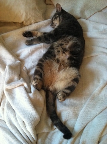 look at that sweet kitty sleeping! glad to see you guys have gotten settled and are having fun!