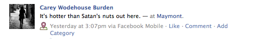 my “it’s hot” phrase of choice is hotter than a crotch. it can be shortened to HTAC (that’s pronounced h-tack) or if it’s super hot, you can add “it’s hotter than [insert number] crotches”. I usually go with hotter than 5 crotches, but that’s just me.
