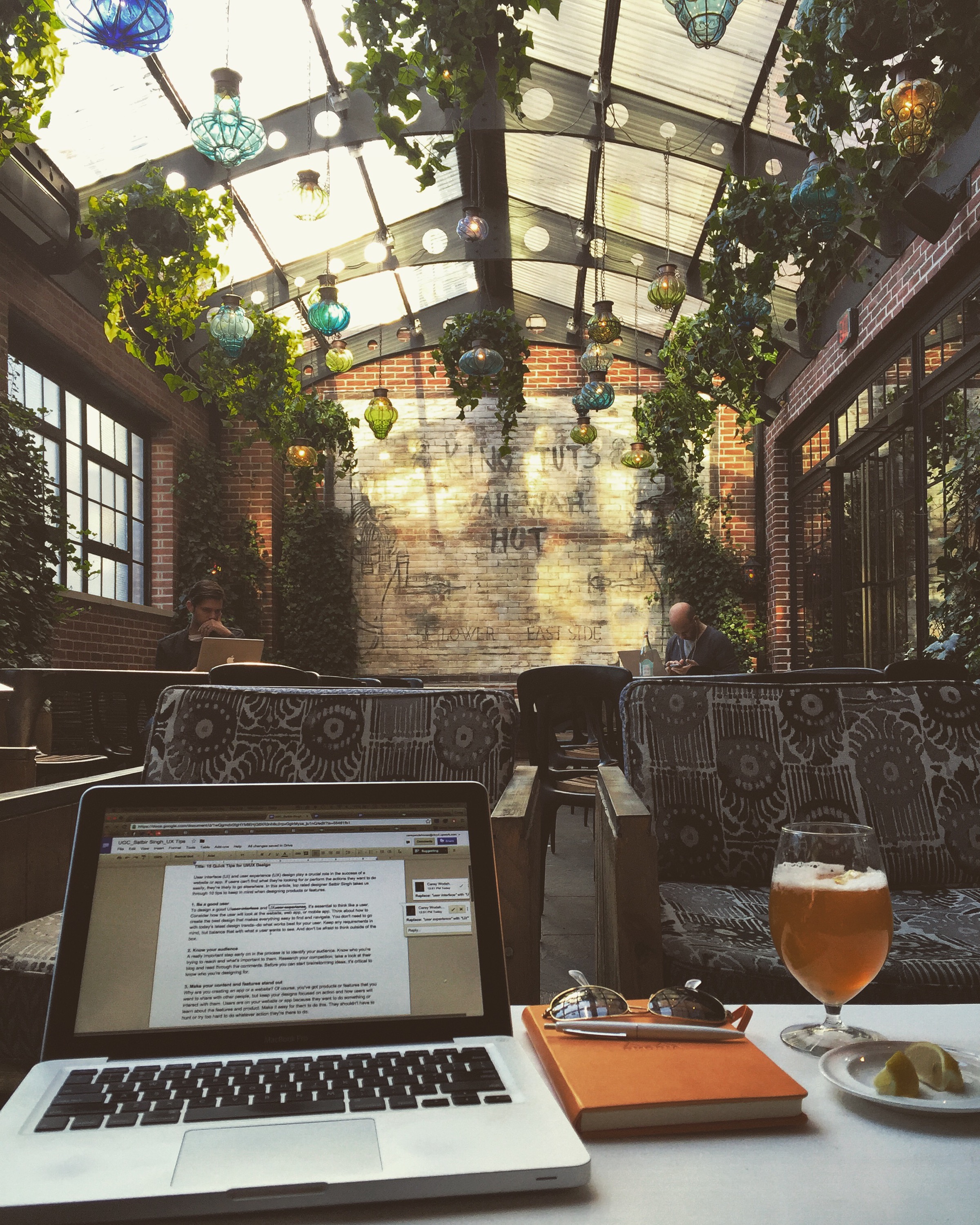 Downstairs at the Ludlow during cocktail hour, where FYI they play Huey Lewis and the News. There’s video of me singing along, but it’s staying in the vault.