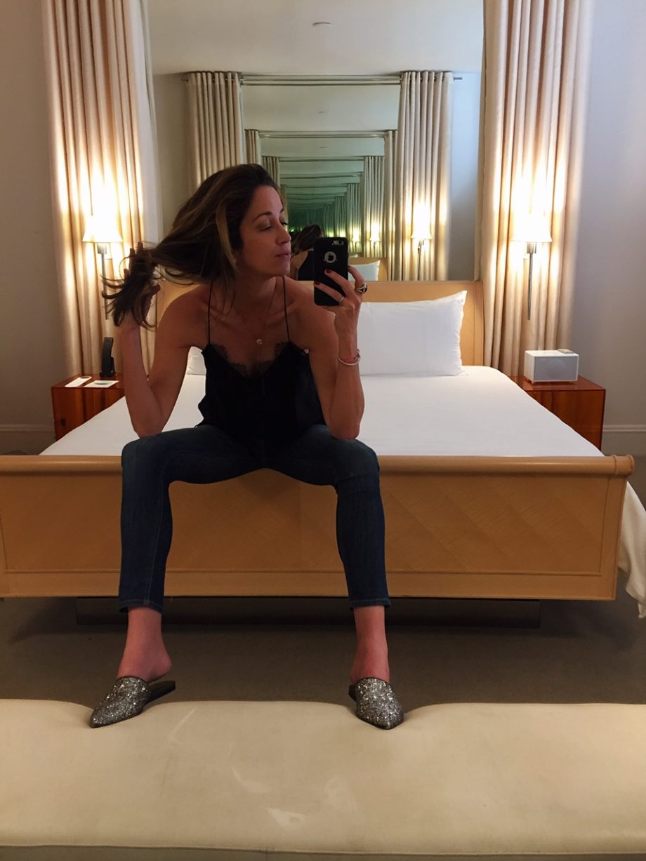 3. Posing semi-sensually in mirrors—KIDDING—wearing silk camisoles. I’ve hated and covered my arms my entire life but just recently decided things will probably never get better than they are right now, so why not let my biceps flap in the breeze a little? I got this Cami NYC one in navy and black I love it so much.
