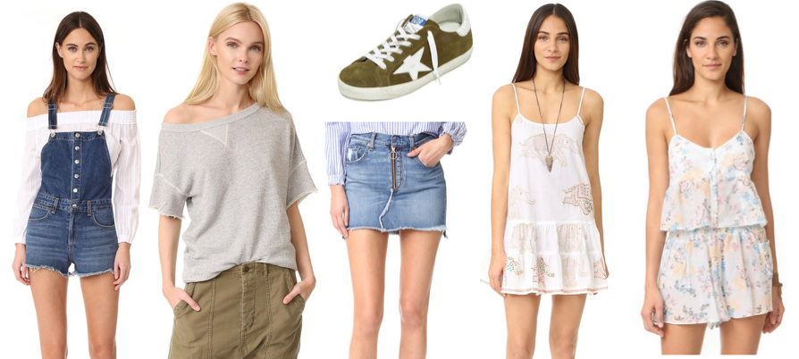 [Don’t murder me for the camisole that looks like it belongs on an American Doll; trust me, I have a plan. From left: Rag & Bone overalls, R13 sweatshirt, Golden Goose superstar sneaks, Rag & Bone denim skirt, MinkPink Camisole, $79.]