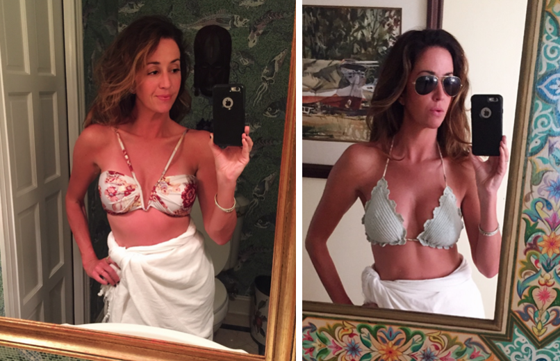 [Tulsi off shoulder bikini + Cavalier plaid ruffle skirt which I don’t know why I gravitate toward, but with a simple grey tank and flat sandals? C’mon. + Mercer flutter floral top and shorts + Caravan black bodice and shorts.]