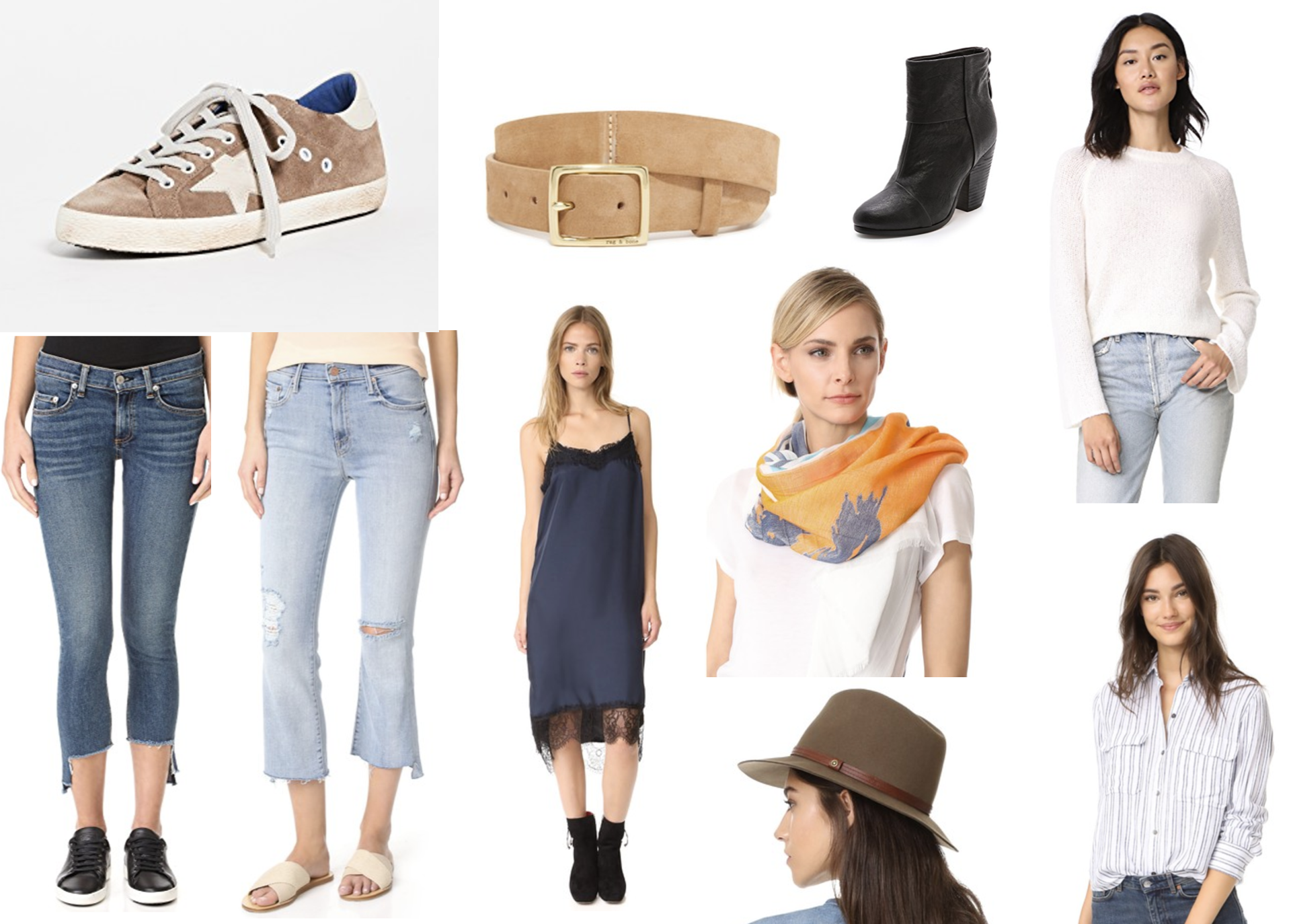 - two pairs of jeans: one skinny, one with more character (I’m beyond thrilled I went for it with some cropped flares! super cute with flats)